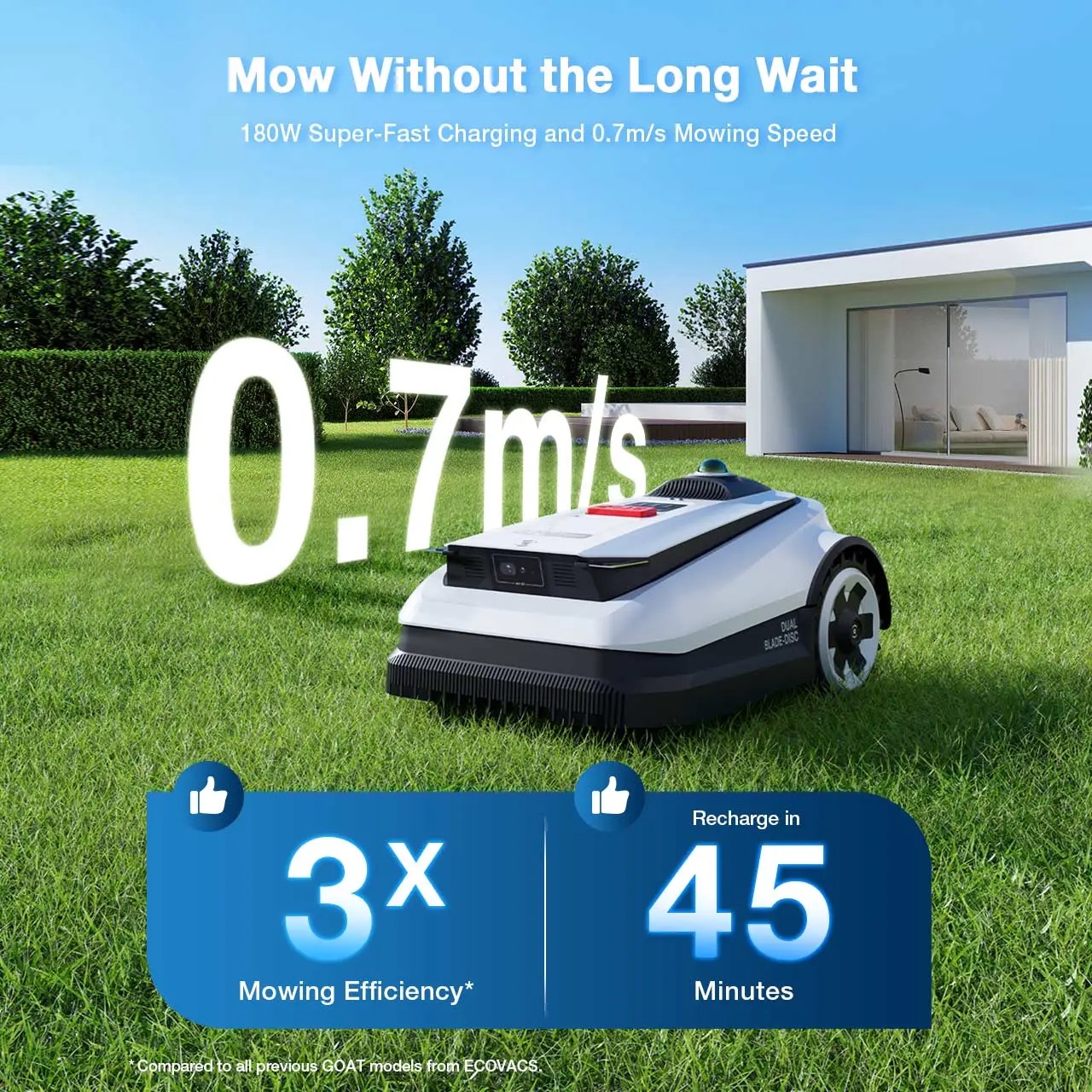 The ECOVACS GOAT A3000 is a robot lawn mower equipped with advanced dual LiDAR navigation technology, eliminating the need for boundary wires or satellite connectivity. Designed for easy setup and smart lawn maintenance, it offers features like excellent obstacle avoidance, quiet operation suitable for night use, and effective mowing on slopes up to 20°. The GOAT A3000 is ideal for users seeking low-effort, wire-free lawn care integrated with smart app functions. Its dual disc system ensures wide, efficient cutting with superior mulching.