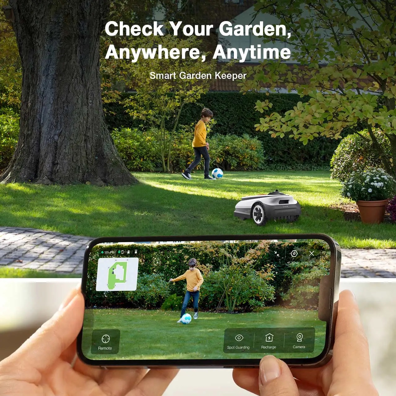 App Integration: App-based integration allows for setup, mapping, creating no-mow zones, manual remote control, and real-time camera view (FPV mode).