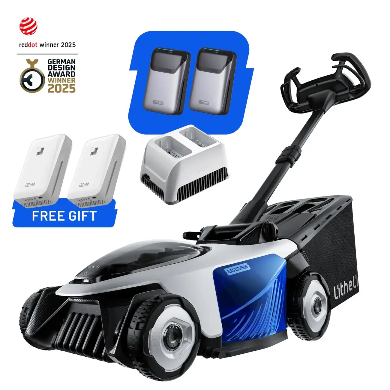 The Litheli EasySurge Electric Lawn Mower impresses with its futuristic design, portability, and surprisingly robust cutting power, especially for small to medium lawns. It features an adjustable self-propelled drive, foldable frame, hot-swappable batteries, and simple controls. While not ideal for steep terrain or brush, it's an affordable, user-friendly choice for residential yards.