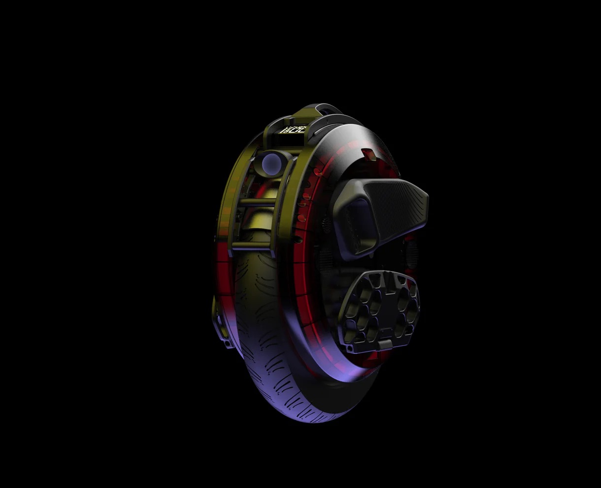 The Begode C8 is an electric unicycle based on the Nicola platform, updated with integrated lighting, suspension, and a focus on stability and comfort. It features a 2500W hollow motor, a 1500Wh (84V) battery with Samsung 50S cells, and a suspension system with 70mm travel. Additional features include an eight-speaker sound system, top-mounted speed display, smart BMS, trolley handle, and kickstand. The wheel weighs about 68 lbs and is geared toward riders who prioritize a stable ride in a modern form factor, though its wide profile can impact ergonomics.