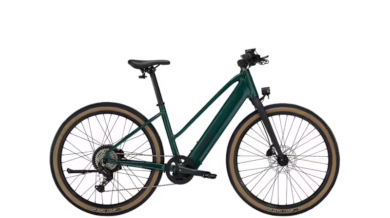 The Trek FX+ 1S is a versatile and lightweight hybrid designed to handle everything from fitness rides and daily commutes to weekend adventures. It features a Hyena hub drive motor delivering 60 Nm of torque, paired with a fully integrated 540Wh battery. This Class 2/3 hybrid model includes a thumb throttle for effortless cruising and a responsive torque sensor for a natural pedal-assist feel. Built on an Alpha Gold Aluminum frame, it comes equipped with a Shimano CUES 9-speed drivetrain, Rush hydraulic disc brakes, and Bontrager H2 Comp tires. The FX+ 1S also prioritizes safety and convenience with a full-color HMI display, integrated turn signals, and the innovative EasyMag charging system.