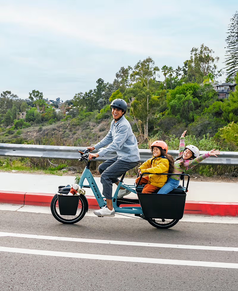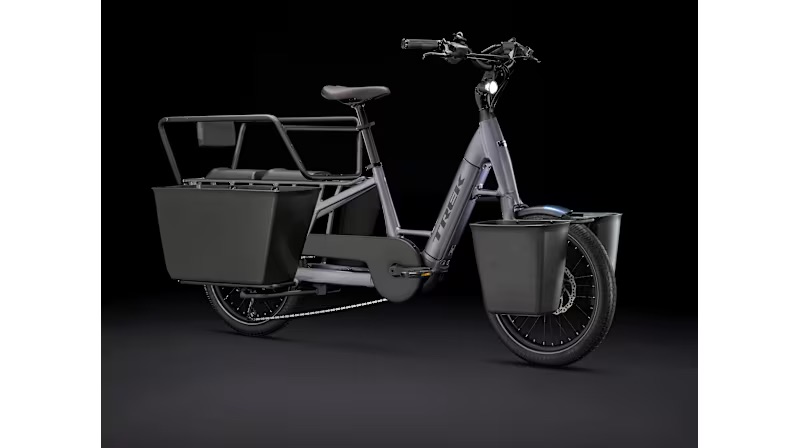 The Trek Fetch+ 4 is an electric cargo box bike designed to replace your car, offering the capacity to confidently carry up to five children or a max box weight of 175 lbs. It features premium individual reclining EVA molded seats with safe 5-point harnesses for young passengers. The bike is powered by a high-torque Bosch Performance Line CX motor and a 750Wh battery, supported by a cable-steering system for stable handling even when fully loaded. For rider convenience, it includes a Bosch SmartphoneGrip that mounts and charges your phone while providing a full-color ride display through the eBike Flow app.