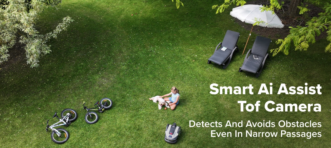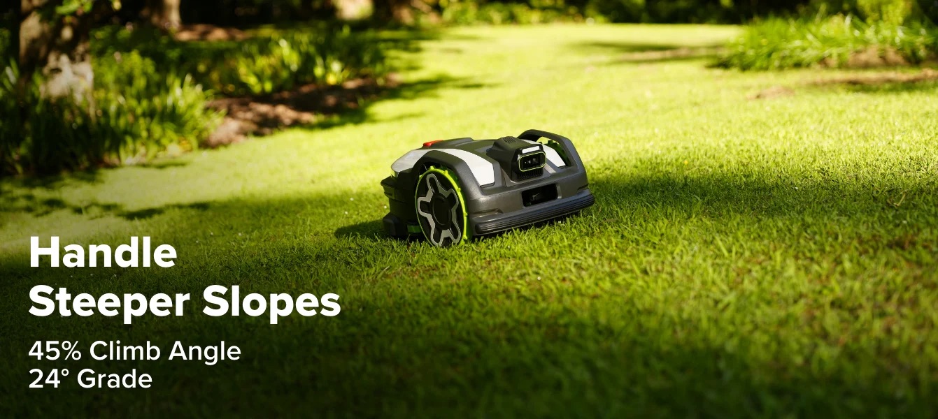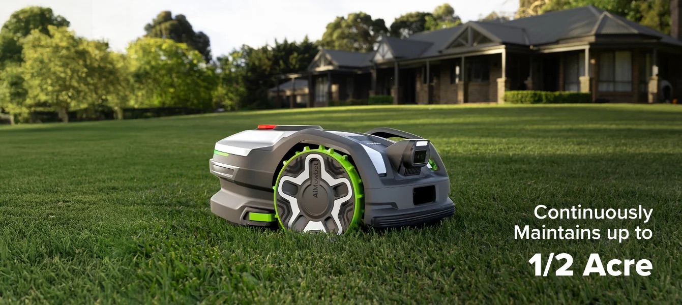 The Greenworks aiMowbot™ C20 is an autonomous robotic mower designed for residential properties up to 0.5 acres. It utilizes a wire-free navigation system that integrates RTK (Real-Time Kinematic) satellite positioning with AI-driven vision technology, allowing the unit to establish virtual boundaries and identify obstacles without the use of physical perimeter wires. This model features an all-wheel-drive (AWD) configuration, enabling it to operate on slopes with gradients up to 31° (60%). The cutting assembly consists of a three-blade mulching system with an electronically adjustable height ranging from 0.8 to 4.0 inches. Technical specifications include an IPX5 waterproof rating, integrated rain sensors, and connectivity via 4G LTE, Wi-Fi, and Bluetooth for app-based management. For security and maintenance, the system includes GPS-based anti-theft tracking and an auto-recharge and resume function.