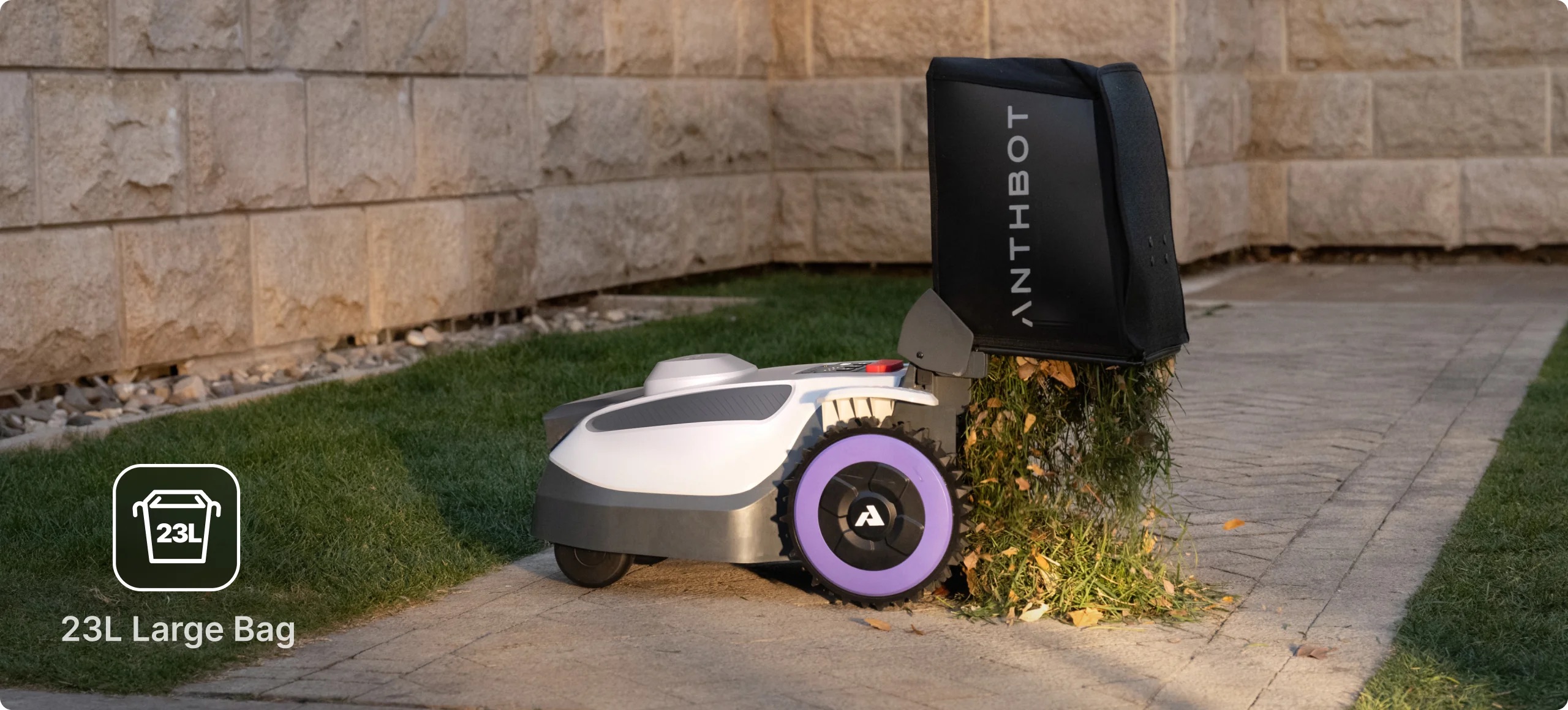 The Anthbot N8 is a multifunctional robotic lawn mower designed for residential yards up to 1,500m² (3/8 acres) that integrates mowing, mulching, collecting, and sweeping capabilities into a single unit. It utilizes a wire-free navigation system combining full-band RTK—which tracks signals from up to 155 satellites—and dual 150° HDR AI cameras to maintain positioning even in areas where satellite signals may be obstructed. The mower features a six-blade cutting disc operating at 4,000 RPM, an app-adjustable cutting height of 1.2 to 2.8 inches, and a 20cm cutting width. A central 23L collection bag manages clippings and debris, utilizing onboard sensors to detect fullness and navigate to user-defined dumping sites for autonomous disposal. Operational power is provided by a 9.2Ah battery, offering approximately 90 minutes of work per 80-minute charge, with a slope capacity of up to 45%. Safety and security features include AI-driven recognition of over 1,000 obstacle types, an IPX6 waterproof rating, GPS theft tracking, and an integrated rain sensor.