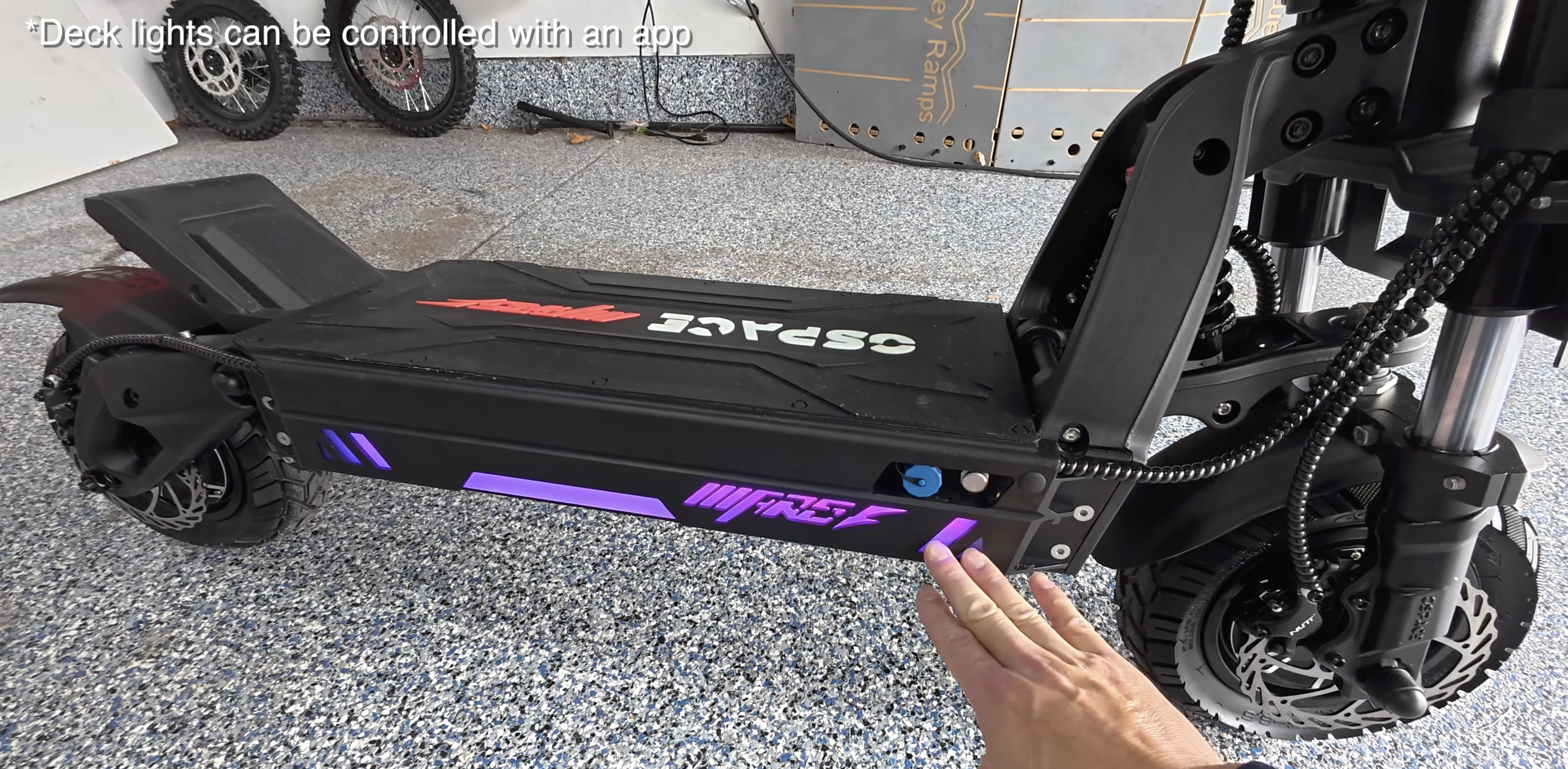 The Gspace Mars 11 GTR is an off road electric scooter constructed with a forged aluminum alloy frame and a high power system utilizing dual 2000W motors. The vehicle is powered by a 72V 45Ah Samsung 21700 battery pack which provides an estimated range of up to 105 miles and supports fast charging through an 84V 6A charger. For ride stability and terrain management the scooter incorporates a double wishbone front suspension and a multi link independent rear suspension paired with 11 inch tubeless tires. Braking performance is managed by a dual hydraulic disc system with integrated electronic ABS for energy recovery. Specialized safety components include an integrated aerosol fire suppression system plus an intelligent battery management system with active charging protection and explosion proof valves. The hardware carries an IP66 waterproof rating and a maximum load capacity of 440 pounds while ride data is monitored through a TFT display.