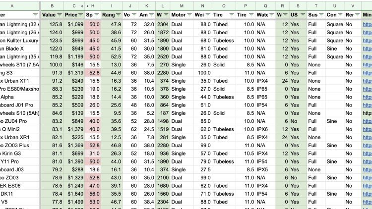 Explore comprehensive comparison tables featuring almost every Electric Unicycle (EUC), scooter, e-bike, and Onewheel currently available on the market. Use dedicated tools for each category to find in-depth, side-by-side specifications and features, helping you make an informed decision about your next personal electric vehicle purchase.